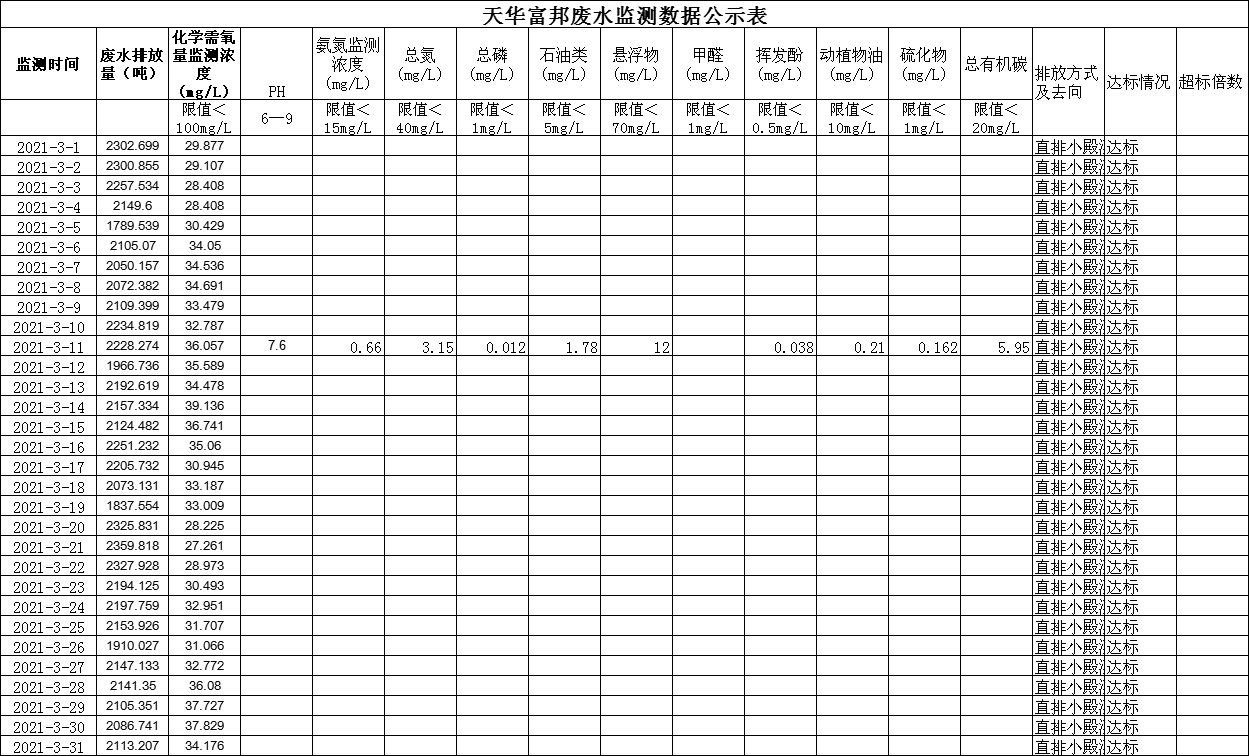 四川天華富邦有限責(zé)任公司3月廢水監(jiān)測公示