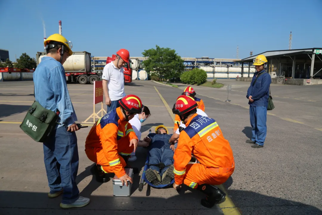 演練模擬縣國防動(dòng)員辦公室通知集團(tuán)區(qū)域可能遭受敵對(duì)勢(shì)力空襲,要求集團(tuán)做好裝置緊急停車和應(yīng)急疏散準(zhǔn)備工作。集團(tuán)啟動(dòng)突發(fā)事故Ⅰ級(jí)(紅色)預(yù)警響應(yīng),緊急停車并疏散相關(guān)人員。演練還模擬集團(tuán)聚四氫呋喃裝置遭受敵對(duì)勢(shì)力空襲,中間罐區(qū)著火、裝車人員受傷等情況,應(yīng)急救援中心緊急處置火情,醫(yī)療救護(hù)人員搶救受傷人員。